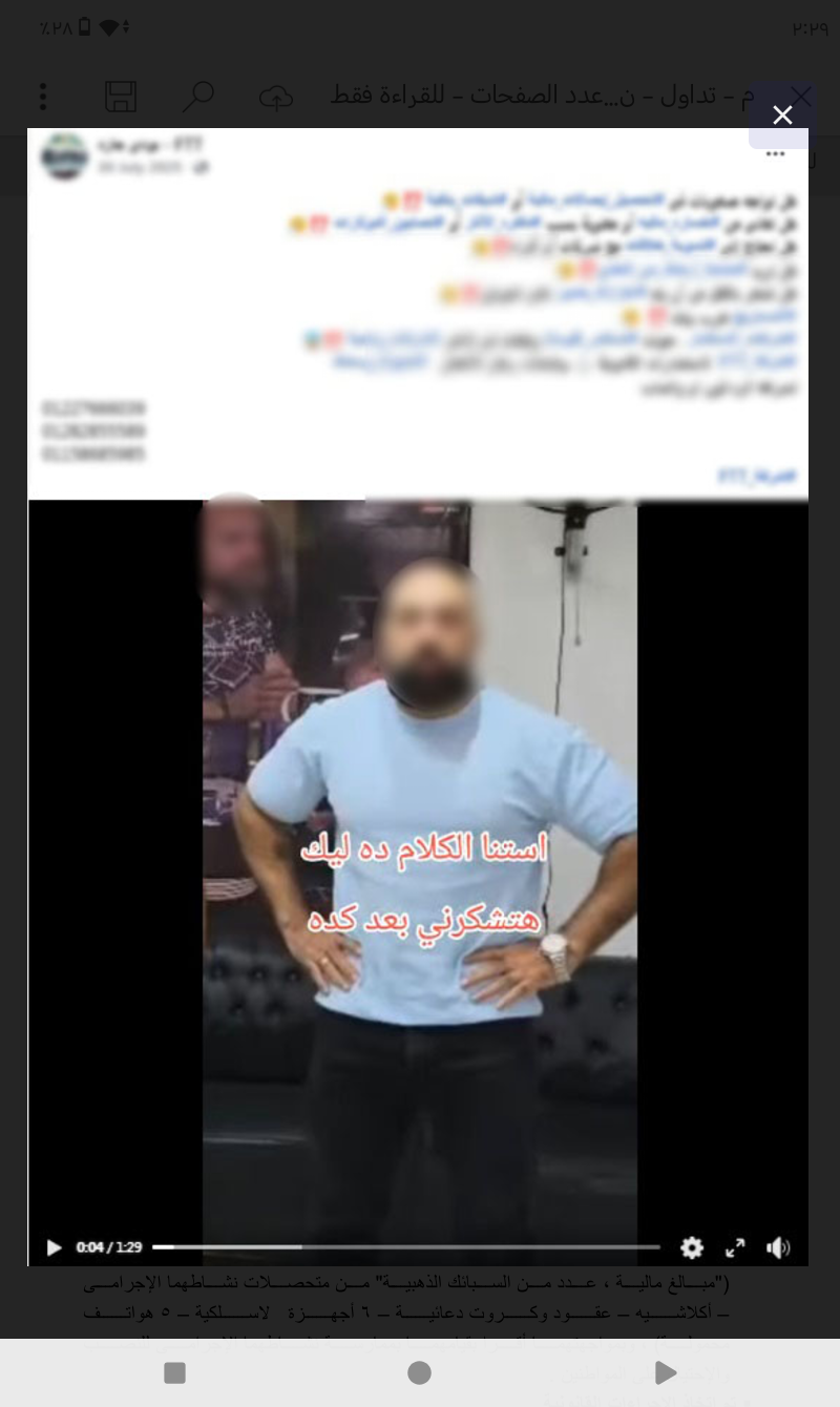 فى إطار كشف ملابسات مقاطع فيديو تم تداولها على إحدى الصفحات بمواقع التواصل الاجتماعى تضمنت ادعاء القائمين على إدارة تلك الصفحة بقدرتهم على مساعدة المواطنين فى إسترداد الحقوق المتنازع عليها "بطريقة غير مشروعة" مقابل مبالغ مالية، واستخدامهم أجهزة لاسلكية "غير مصرح بتداولها" فى إطار استعراض القوة لإيهام المتعاملين معهم بسطوتهم.