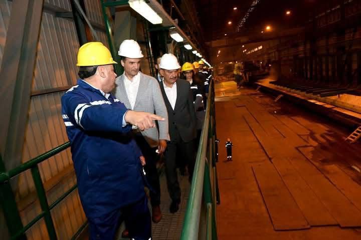 جاء ذلك بحضور السيدة/ عفاف أحمد عز رئيس قطاع تطوير الاعمال بالمجموعة والأستاذ/ علاء أبو الخير نائب رئيس مجموعة عز الصناعية، وخلال الزيارة تفقد الوزير مصنع الاختزال، ومنطقة الأفران والماكينات، ومراحل درفلة الصلب المسطح وصولاً للمنتج النهائي.