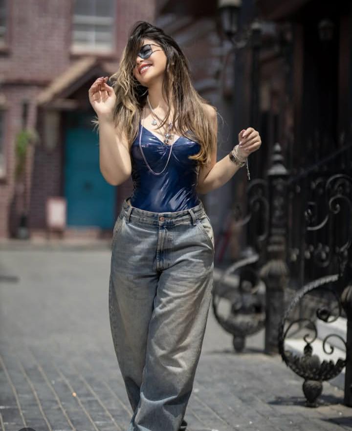وظهرت ميرنا في الصور مرتدية بلوزة باللون الأزرق، نسقت معها بنطلون جينز رمادي، لتبرز أناقتها ورشاقتها بشكل طبيعي وعصري.