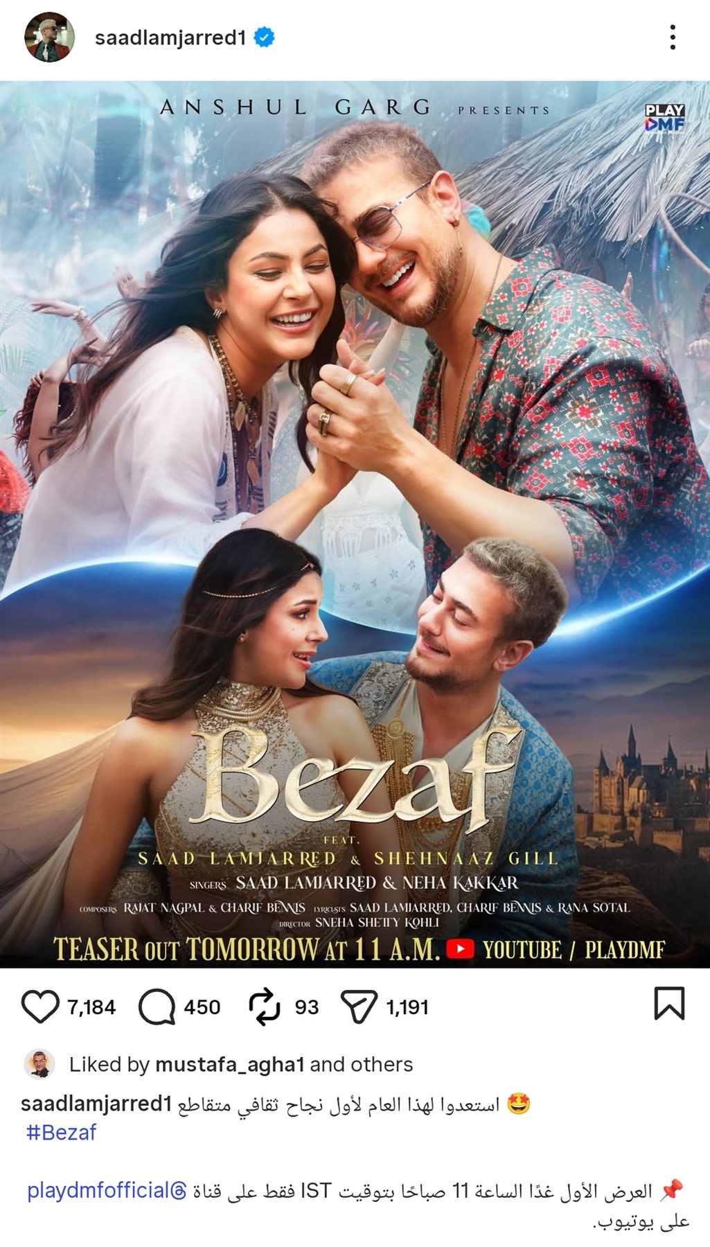 وكشف سعد لمجرد عن موعد طرح أغنية بزاف، حيث شارك جمهوره البوستر الدعائي للأغنية، من خلال حسابه الرسمي عبر موقع تبادل الصور والفيديوهات القصيرة إنستجرام، وعلق: استعدوا لأول عمل ناجح عابر للثقافات هذا العام، بزاف الإعلان التشويقي غدًا الساعة 11 صباحًا بتوقيت الهند، حصريًا على قناة playdmfofficial على يوتيوب.