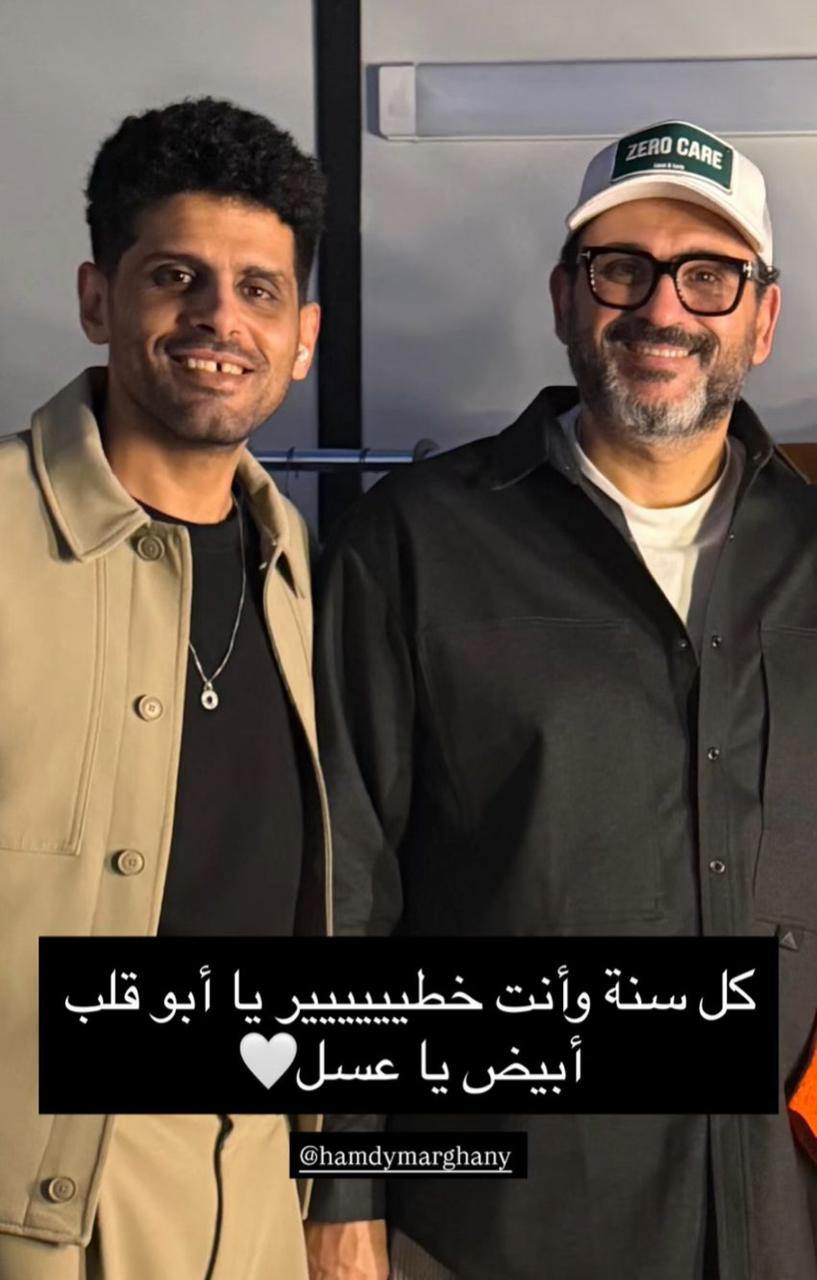 وشارك أكرم حسني صورة تجمعه بحمدي المرغني عبر حسابه الشخصي على موقع التواصل الاجتماعي انستجرام، وكتب: "كل سنة وانت خطير يا أبو قلب أبيض يا عسل".