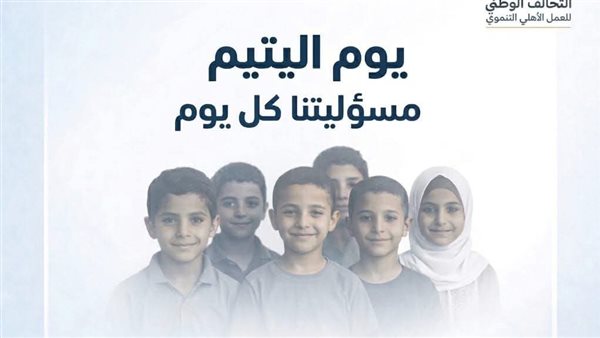 أكد التحالف الوطني للعمل الأهلي التنموي على محورية دور اليتيم في استراتيجيات الرعاية الاجتماعية تحت عنوان: "يوم اليتيم… مسؤوليتنا كل يوم".