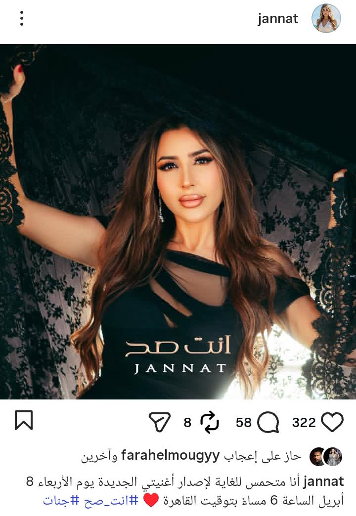 يُذكر أن جنات تحرص في الفترة الأخيرة على التواجد بقوة في الساحة الفنية من خلال أعمال متتالية، ما يعكس رغبتها في الحفاظ على نجاحها وتعزيز حضورها بين نجوم الغناء في الوطن العربي