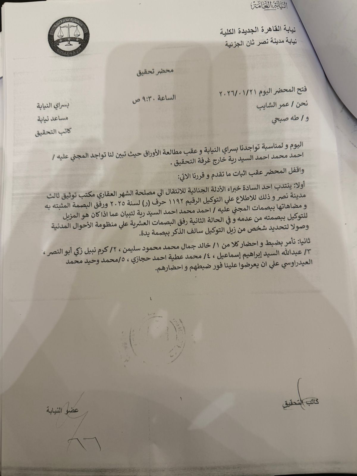 البداية بورود بلاغ إلى الأجهزة الأمنية، من أحمد محمد السيد، بقيام شخصين بتزوير توكيل يحمل رقم 1192 لسنة 2025 حرف «ر» توثيق ثالث مدينة نصر، منسوب للمبلغ، يتيح للمتهمين «خالد.ج» هارب، و«عبدالله.» هارب، بإدارة وقيادة جميع المركبات المملوكة للشاكي والتعامل مع جهات المرورر وغيرها من الاختصاصات.