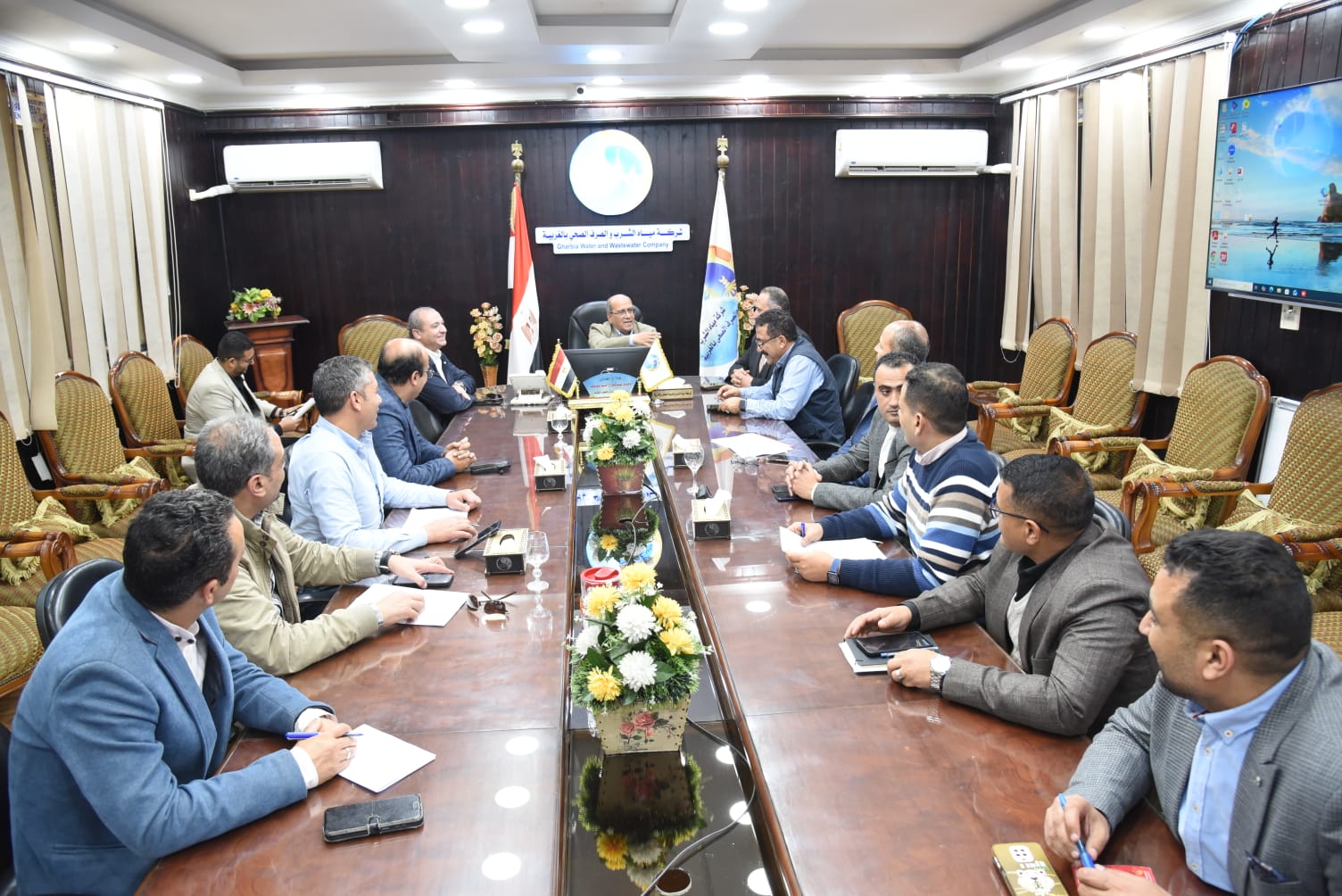 عقد المهندس أحمد جابر شحاتة رئيس مجلس إدارة الشركة القابضة لمياه الشرب والصرف الصحي، والأستاذ الدكتور أبو العباس عيسى نائب رئيس مجلس الإدارة، اجتماعًا موسعًا مع اللواء مهندس محمد عبد الفتاح رئيس شركة مياه الشرب والصرف الصحي بالغربية، ورؤساء القطاعات بشركة مياه الغربية، بحضور العميد محمد جلال استشاري المشروعات بالشركة القابضة.