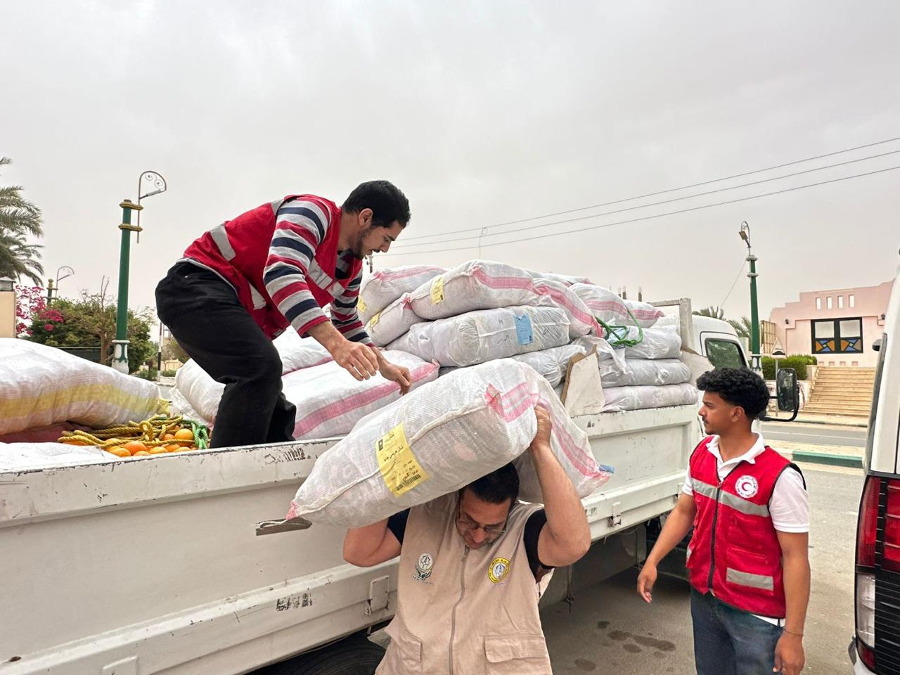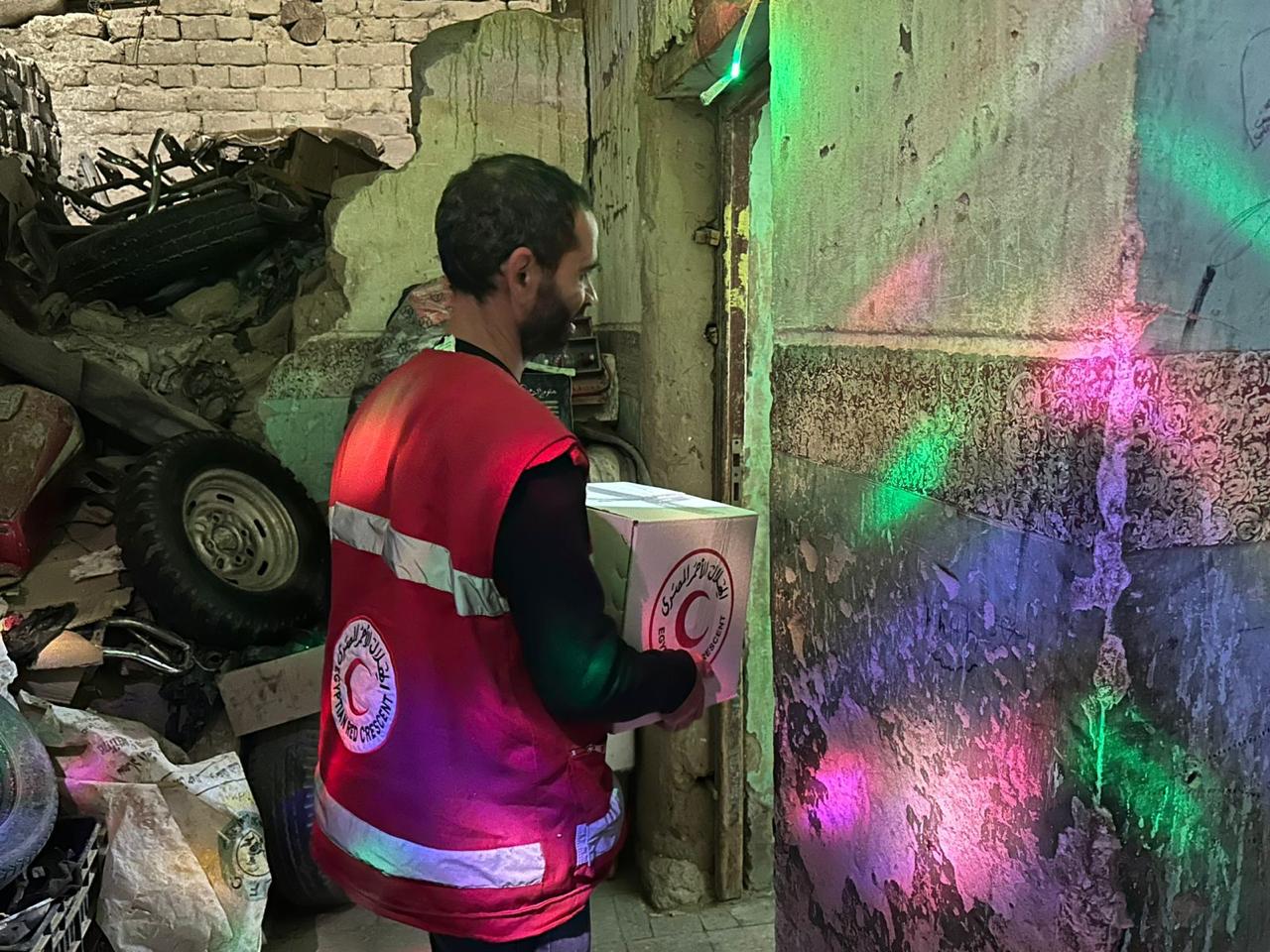 ويساهم متطوعو الهلال الأحمر المصري فى التوعية الصحية للأهالي وعقد ندوات توعوية في مجال الإسعافات الأولية، إلى جانب تجهيز وتعبئة وتوزيع السلال الغذائية على الأسر الأولى بالرعاية، إلى جانب بطاطين ومستلزمات عناية شخصية.