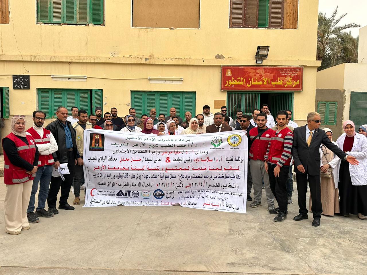 الهلال الأحمر المصري وجامعة الأزهر يطلقان قافلة تنموية وطبية بالوادي الجديد