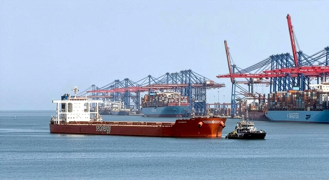 ميناء شرق بورسعيد يستقبل أكبر سفينة صب جاف ترسو في ميناء مصري على رصيف محطة «سكاي بورتس»