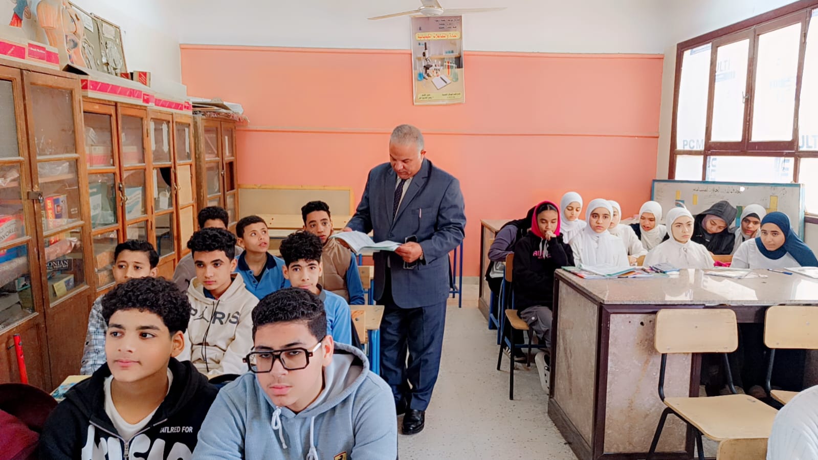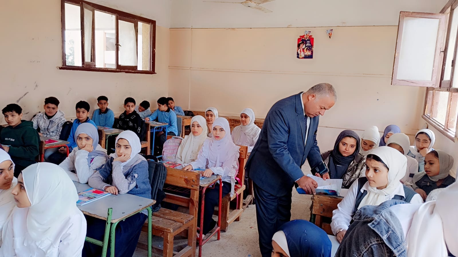 قام وكيل الوزارة بتفقد عدد من الفصول الدراسية بالمدرسة حيث تابع سير العملية التعليمية داخل الصف الثاني الإعدادي في مواد العلوم واللغة الإنجليزية واللغة العربية وحرص على التأكد من التزام المعلمين بشرح المناهج وفق الخطة الزمنية المحددة بما يضمن تحقيق الاستفادة الكاملة للطلاب.