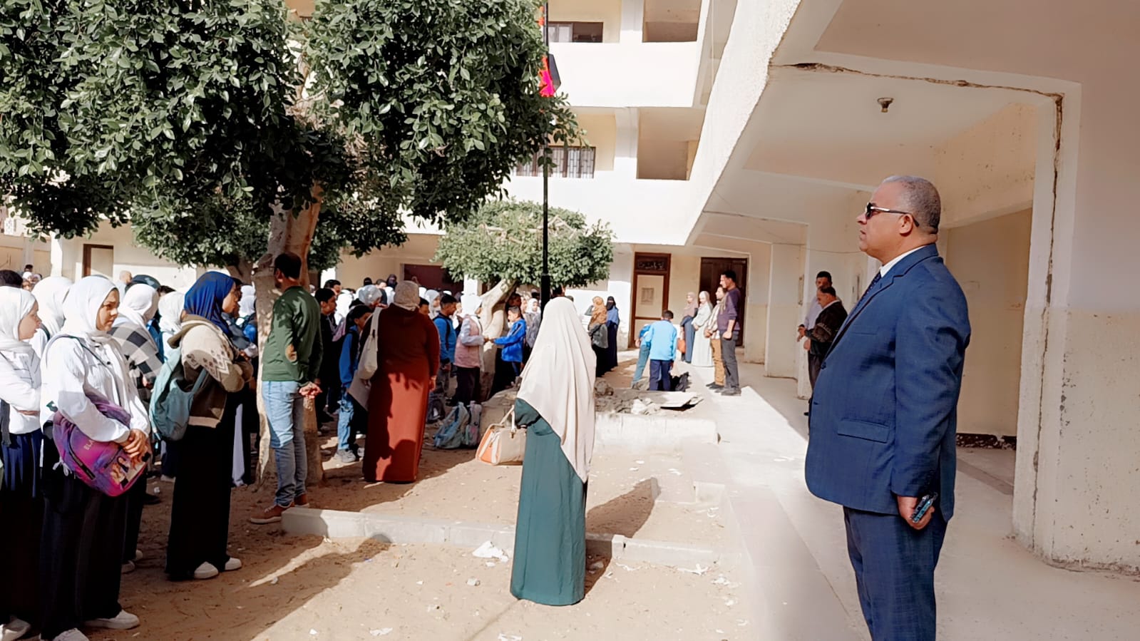 شهد وكيل الوزارة طابور الصباح وتحية العلم بمدرسة السلام الإعدادية بفيديمين حيث أكد على أهمية الالتزام بالحضور المبكر لجميع العاملين والطلاب والمشاركة الفعالة في الطابور المدرسي لما يمثله من قيمة تربوية تسهم في تعزيز روح الانتماء الوطني لدى الطلاب وغرس القيم الإيجابية داخل نفوسهم.