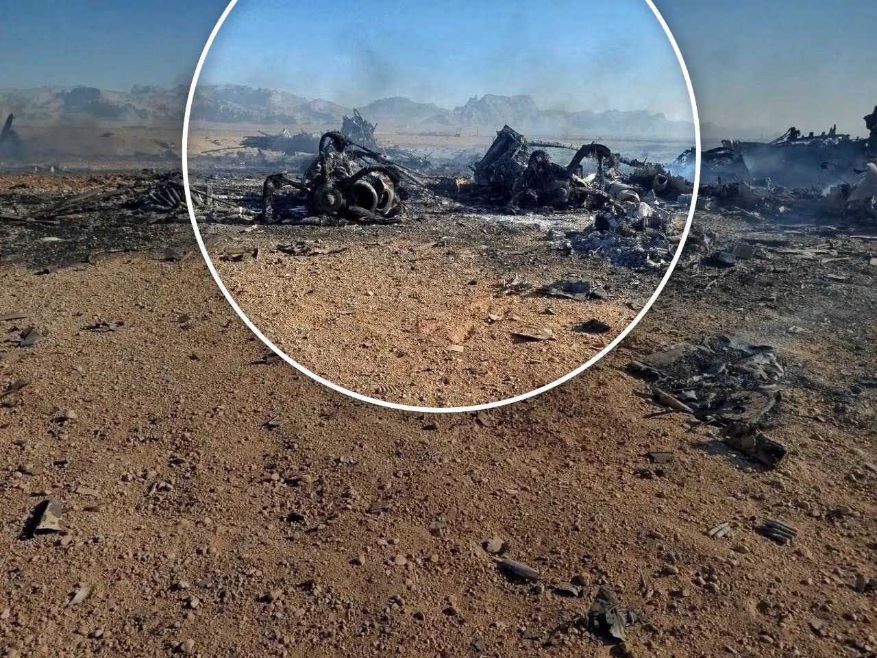 وأظهرت اللقطات الميدانية حقلًا واسعًا من الحطام يتصاعد منه الدخان، إلى جانب أجزاء مدمرة من الطائرة، بما في ذلك ما يُعتقد أنها المحركات التوربينية، فيما لم يتضح بعد نوع الطائرة أو الجهة المالكة لها.