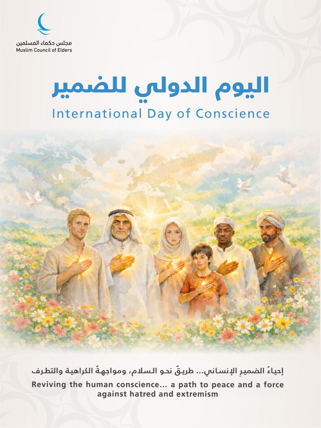 وقال مجلس حكماء المسلمين، في بيانٍ له، إنَّ إحياء هذه المناسبة الدولية، التي يُحتفى به في الخامس من أبريل من كل عام، يعكس حاجة العالم المتزايدة إلى استنهاض القيم الأخلاقيَّة والإنسانيَّة في مواجهة ما يشهده من حروبٍ وصراعاتٍ وأزماتٍ متلاحقة، ويجدِّد التذكير بأنَّ الضمير الحي هو الحصن الذي يحمي المجتمعات من الانزلاق إلى الكراهية والانقسام والعنف.