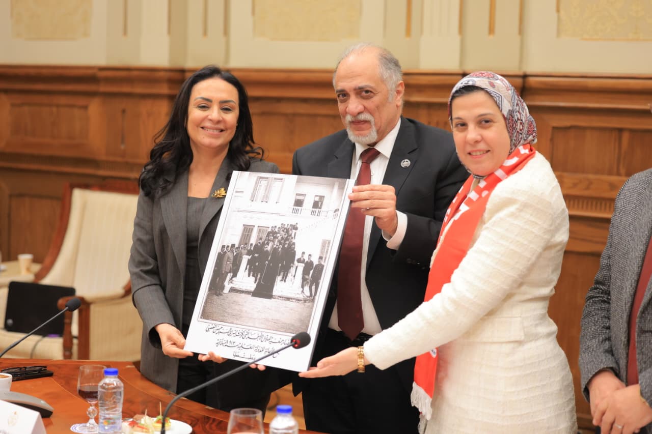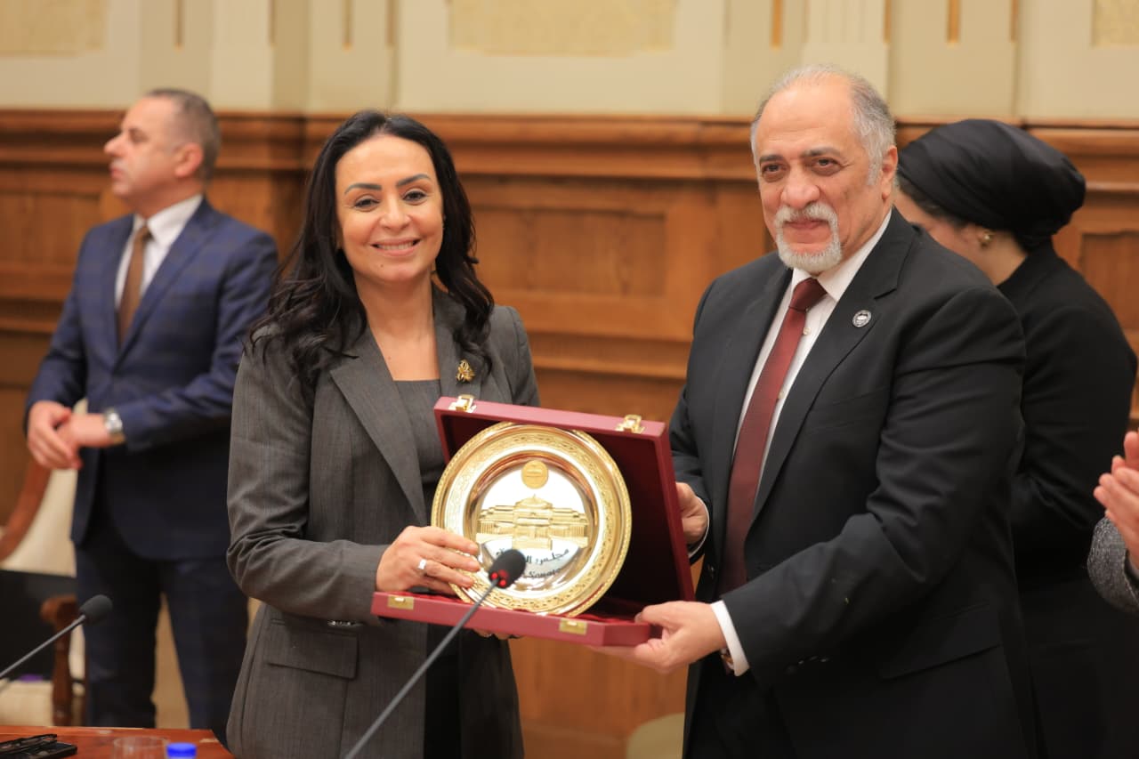 وأهدت وزيرة التضامن الاجتماعي درع الهلال الأحمر المصري للدكتور الهادي القصبي رئيس لجنة حقوق الإنسان والتضامن الاجتماعي بمجلس الشيوخ.