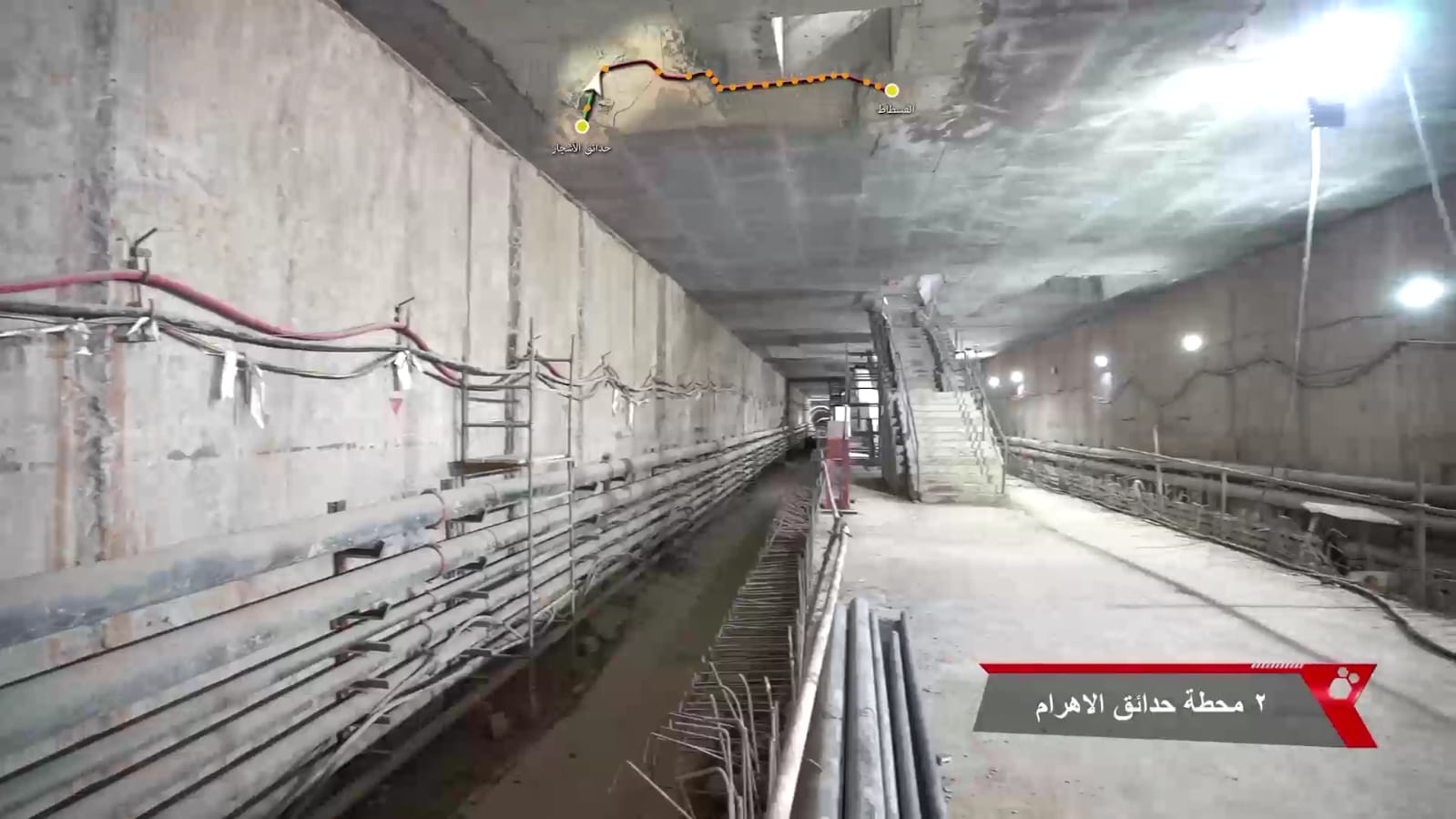 3- يجري حالياً تنفيذ الأعمال الإنشائية بالمرحلة الأولى بالمحطات كذلك أعمال الحفر النفقي و تتقدم معدلات تنفيذ أعمال الحفر النفقي للنفقين بالجزء الأول من المرحلة الاولى (نفق لكل إتجاه) بواسطة 4 ماكينات حفر نفقي (2 ماكينة لكل إتجاه ) حيث وصلت الماكينة الأولى الى محطة المتحف المصرى الكبير والثانية فى الطريق الى محطة الاهرامات والثالثة وصلت محطة مدكور والرابعة وصلت محطة الطالبية