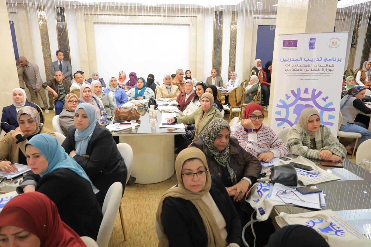 دشّنت وزارة التضامن الاجتماعي أولى نسخ البرنامج التدريبي المتخصص لإعداد المدربين للرائدات الاجتماعيات، والذي يُنظم بالتعاون مع برنامج الأمم المتحدة الإنمائي (UNDP)، وبدعم من الاتحاد الأوروبي، وذلك في إطار جهود الوزارة لتعزيز القدرات البشرية والمؤسسية وبناء كوادر قادرة على نقل المعرفة وتطوير منظومة العمل الميداني وبمشاركة المنسقين المركزيين لشؤون الرائدات الاجتماعيات بالديوان العام، ومديرى إدارات المرأة بمديريات التضامن الاجتماعي ومنسقين متابعة أعمال التمكين الاقتصادي والحماية الاجتماعية.