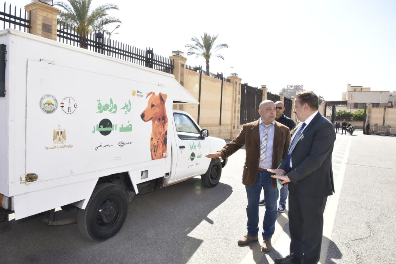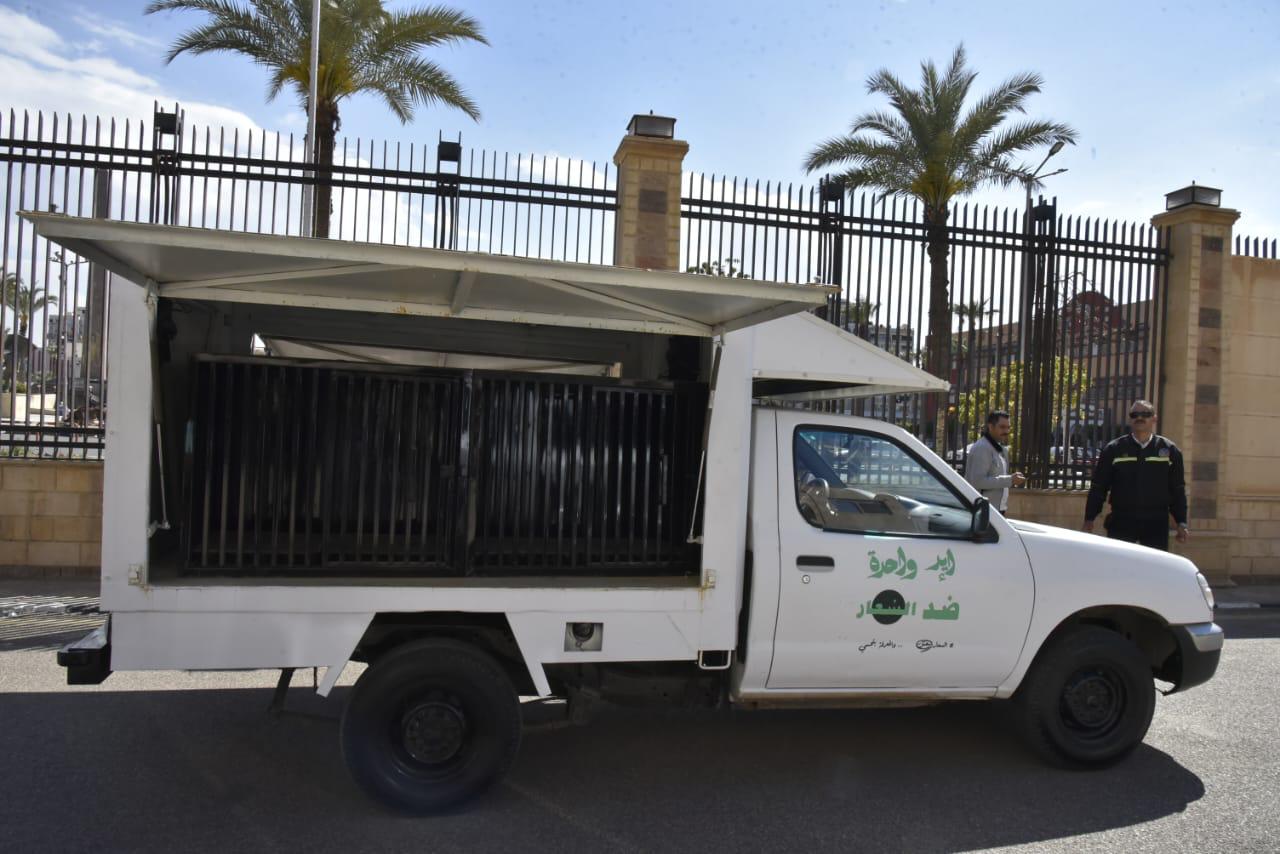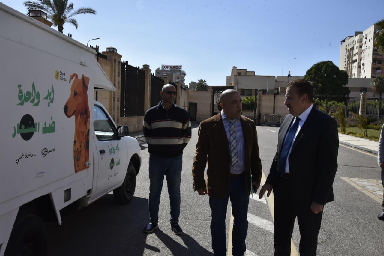 محافظ بورسعيد يتفقد نموذجًا للسيارات المخصصة لجمع الكلاب الحرة من الشوارع