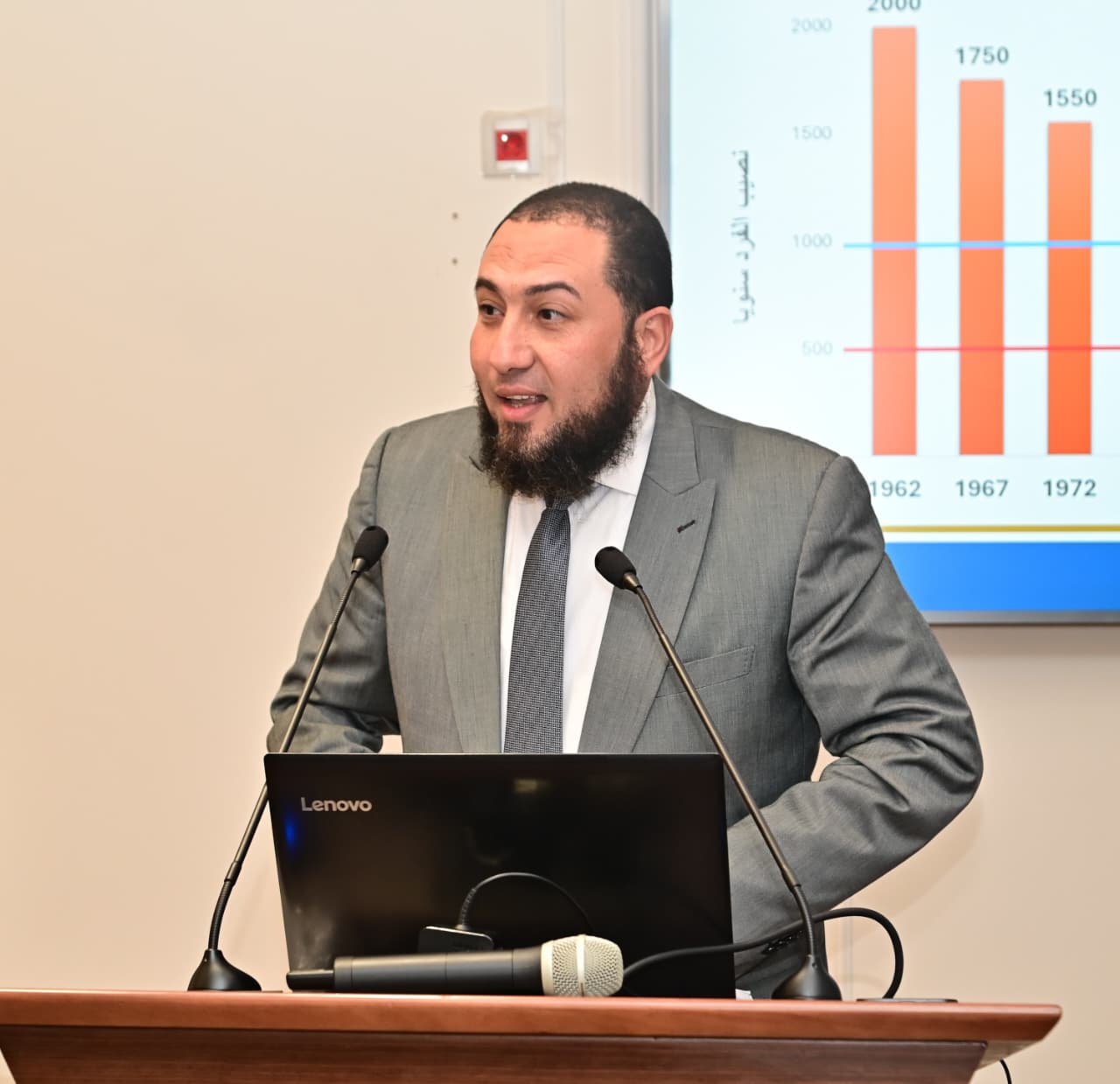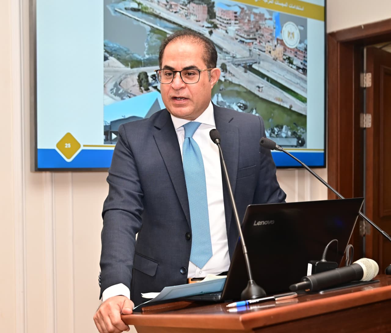 وقام الدكتور سويلم بتقديم عرض تقديمي يستعرض أهم ملامح ومحاور الجيل الثاني لمنظومة المياه في مصر 2.0، حيث استعرض سيادته الموقف المائي الحالي، حيث يبلغ الطلب على المياه في مصر ٨٨.٥٥٠ مليار متر مكعب من المياه سنويًا، في حين تُقدّر مصادر المياه المتجددة في مصر بـ ٦٥.٣٥٠ مليار متر مكعب سنويًا، مع إعادة استخدام ٢٣.٢٠ مليار متر مكعب سنويًا من المياه لسد الفجوة بين الطلب على المياه ومصادر المياه المتجددة. كما أشار سيادته إلى أنه، وعلى الرغم من تراجع صافي النمو السكاني من ١.٩٥٠ مليون نسمة عام ٢٠١١ إلى ١.٢٨٠ مليون نسمة عام ٢٠٢٤، فإن الزيادة السكانية في مصر لا تزال تؤدي لتزايد الفجوة بين الطلب على المياه والمتاح منها، وتراجع نصيب الفرد من المياه من ٢٠٠٠ متر مكعب سنويًا في عام ١٩٦٢، ليقل عن خط الفقر المائي (١٠٠٠ متر مكعب سنويًا) في التسعينيات، وصولًا إلى حوالي ٥٠٠ متر مكعب سنويًا في الوقت الحالي.