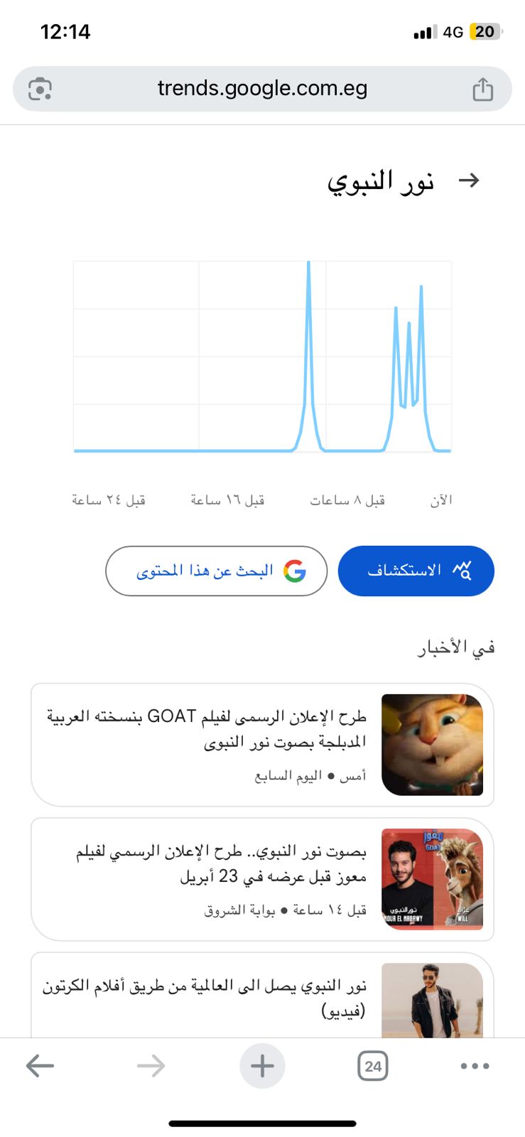 تصدّر اسم الفنان نور النبوي محرك البحث "جوجل" خلال الساعات الماضية، وذلك عقب طرح الإعلان التشويقي لفيلم الأنيميشن العالمي معوّز (GOAT) بنسخته العربية المدبلجة، والذي يشارك فيه بالأداء الصوتي.
