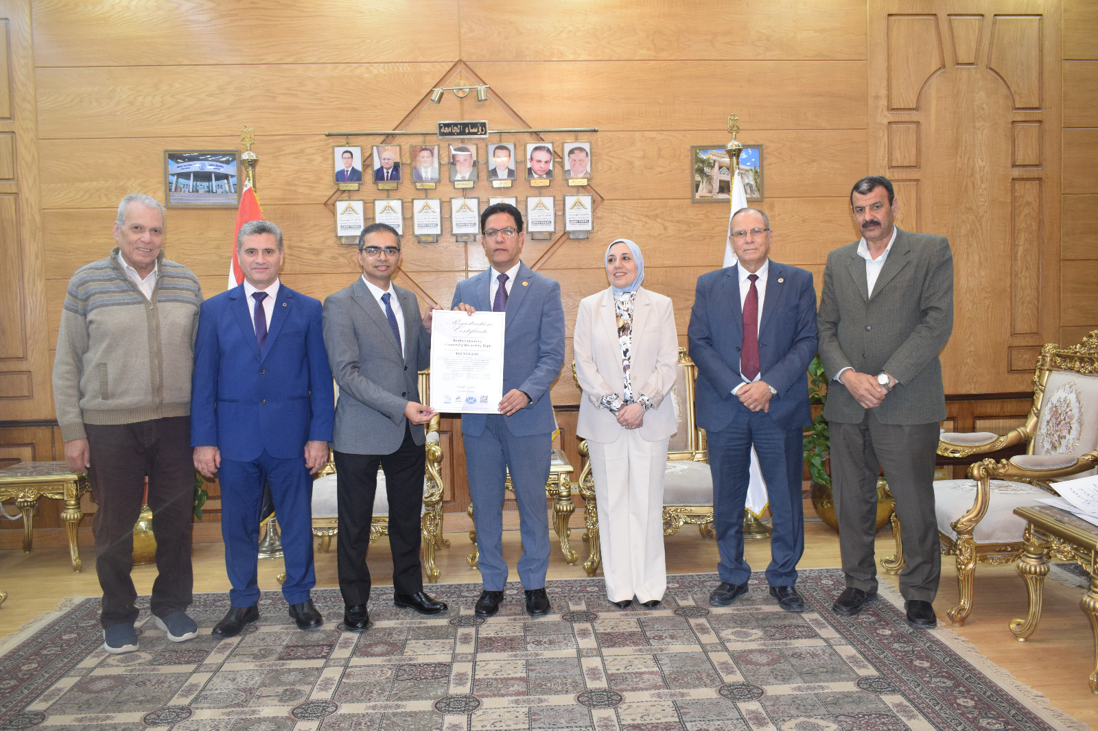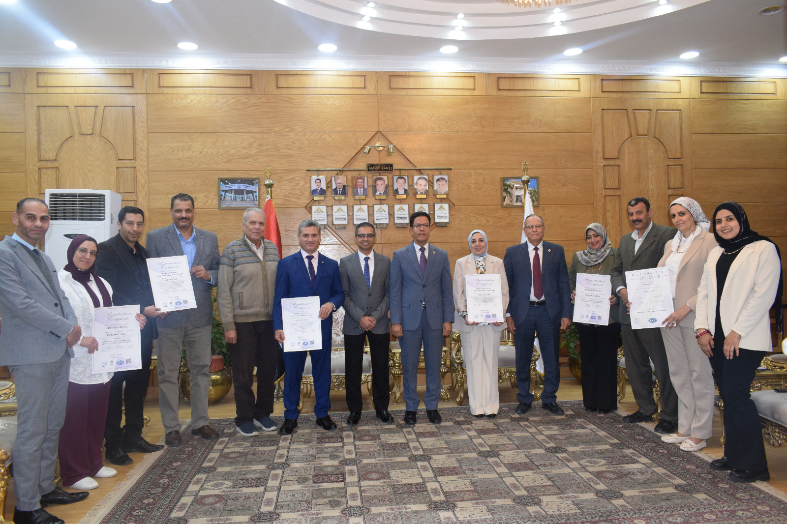 رئيس جامعة بنها يتسلم شهادات الأيزو لإدارة الجامعة وقطاع المدن الجامعية من الجهة المانحة