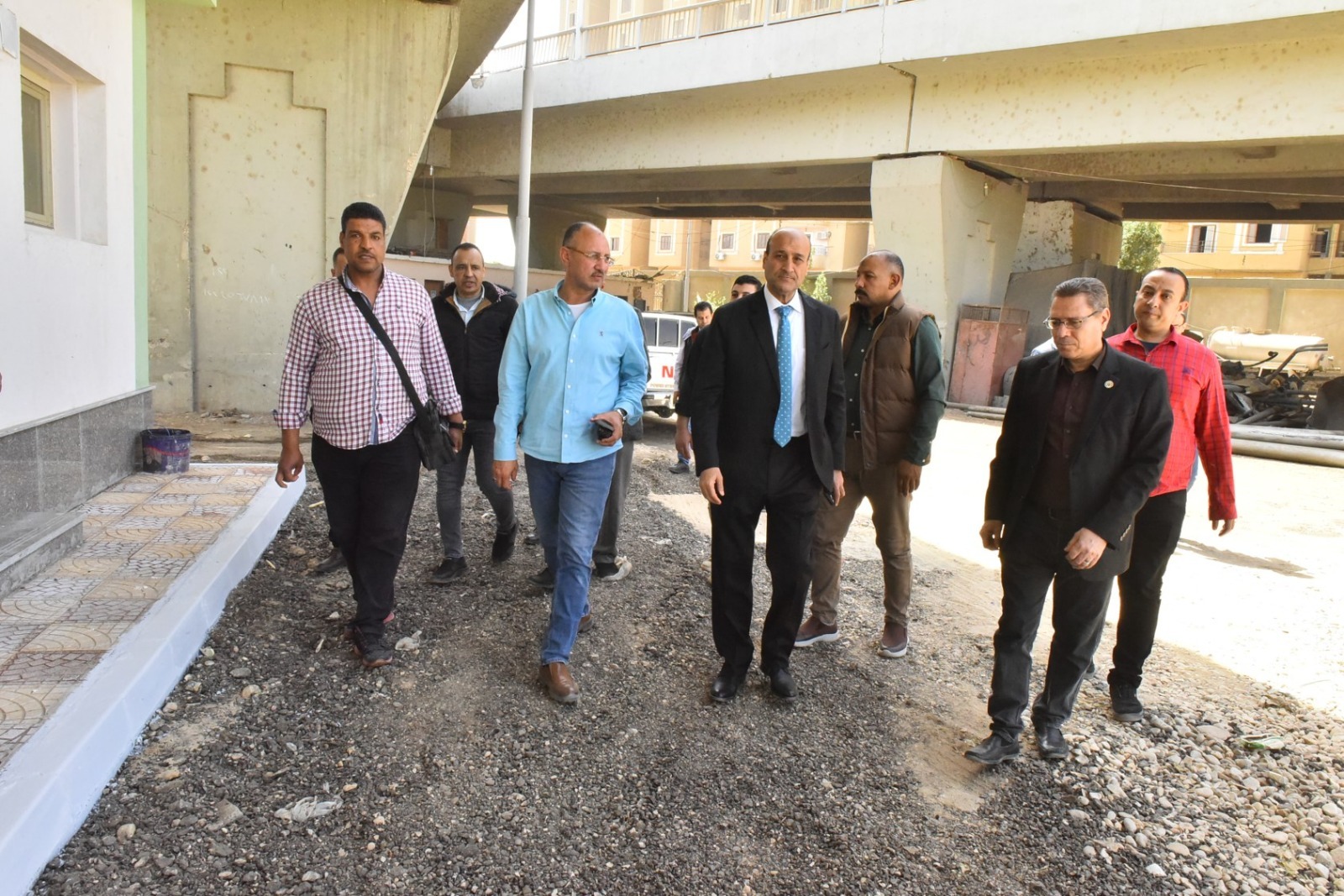 واستهل المحافظ جولته بتفقد المكاتب الإدارية، واطلع على مستوى التجهيزات اللوجستية وبيئة العمل، كما استمع إلى شرح تفصيلي حول الموقف التنفيذي لأعمال التطوير، حيث تبلغ مساحة الحملة نحو 6 آلاف متر مربع، وتستوعب ما يقرب من 115 معدة متنوعة تشمل قلابات ولوادر وحفارات وأبراج كهرباء.