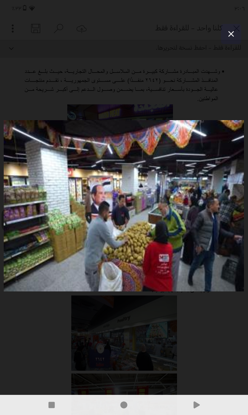 وشهدت المبادرة مشاركة كبيرة من السلاسل والمحلات التجارية، حيث بلغ عدد المنافذ المشاركة نحو (2642 منفذًا) على مستوى الجمهورية، تقدم منتجات عالية الجودة بأسعار تنافسية، بما يضمن وصول الدعم إلى أكبر شريحة من المواطنين.