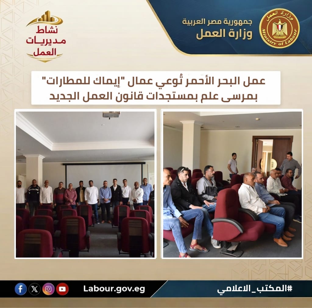 4-"عمل البحر الأحمر" تُوعي عمال "إيماك للمطارات" بمرسى علم بمستجدات قانون العمل