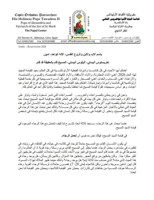 ويمكنكم مشاهدة الرسالة البابوية من خلال الموقع الرسمي للكنيسة القبطية الأرثوذكسية