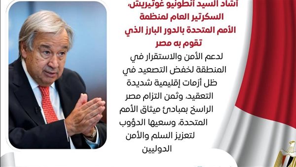 في ظل التحديات الإقليمية المتصاعدة، تواصل مصر أداء دورها المحوري في دعم الأمن والاستقرار، انطلاقًا من مسؤوليتها التاريخية تجاه أشقائها العرب، وقد أشاد أنطونيو غوتيريش، السكرتير العام للأمم المتحدة، بالجهود المصرية البارزة في خفض التصعيد وتعزيز السلم الإقليمي.