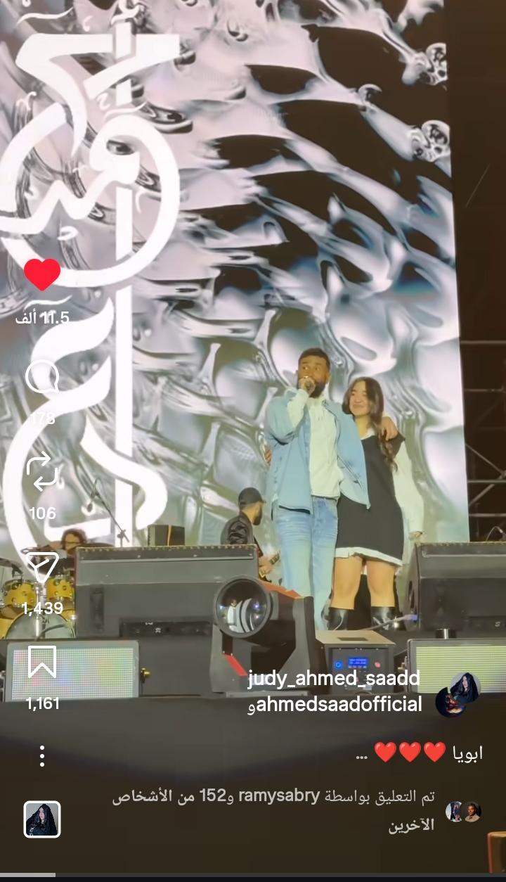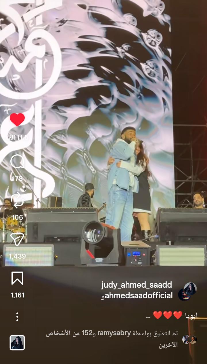 ونشر أحمد سعد مقطع فيديو من الحفل عبر حسابه على "إنستجرام"، كشف من خلاله أنه كان يرفض في البداية فكرة دخول ابنته مجال الغناء، لكنه قرر كسر هذا الحاجز خلال الحفل ومشاركة الجمهور هذه اللحظة الخاصة.