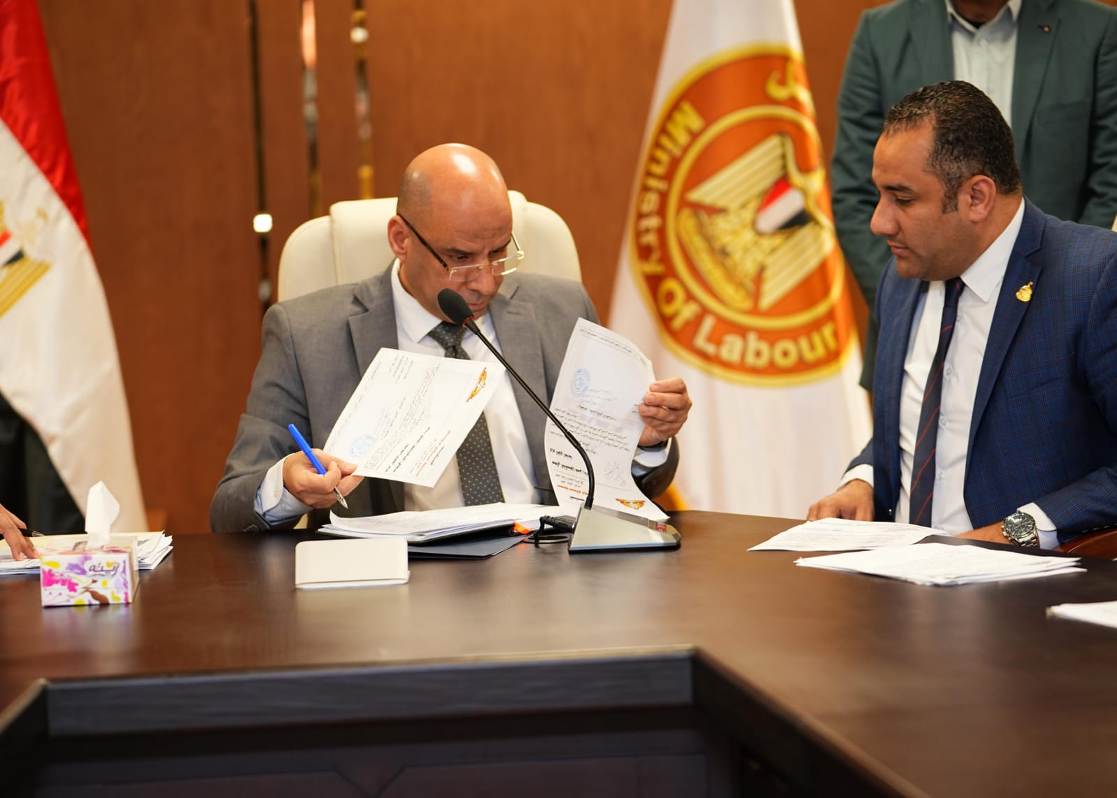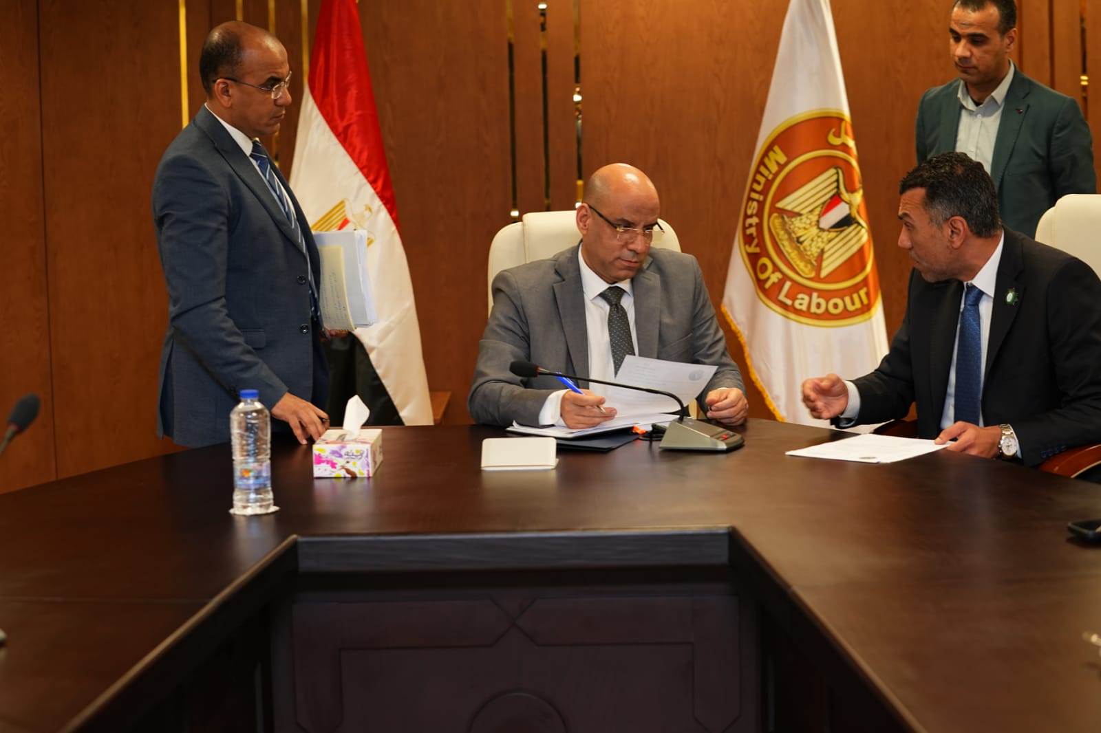 كما أكد الوزير أهمية الاستفادة من نشرات التوظيف الأسبوعية التي تعلن عنها الوزارة، والتي تتضمن آلاف فرص العمل في مختلف القطاعات، موضحًا أن هذه النشرات تمثل نافذة مهمة لربط الشباب الباحثين عن العمل بفرص التشغيل المتاحة بالتعاون مع منشآت القطاع الخاص...وتطرق اللقاء كذلك إلى إمكانية تنظيم ملتقيات توظيف بالتعاون بين الوزارة والسادة النواب في مختلف المحافظات، خاصة محافظات الصعيد، بهدف توسيع دائرة فرص العمل أمام الشباب وتسهيل التواصل المباشر بين أصحاب الأعمال والباحثين عن فرص عمل، مؤكدًا أهمية الشراكة مع القطاع الخاص في هذا الملف الحيوي.