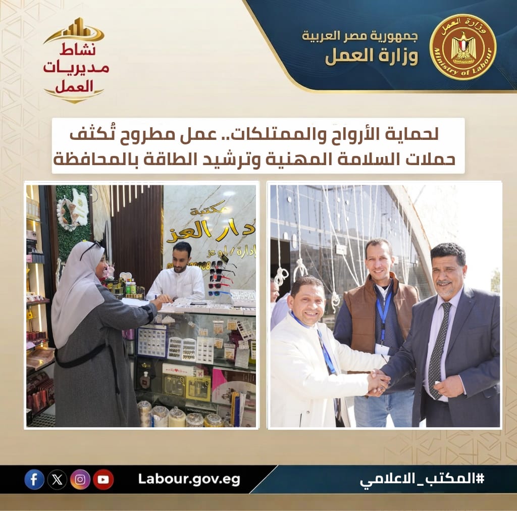 تنفيذًا لتوجيهات وزير العمل حسن رداد، واصلت مديرية عمل مطروح، بقيادة المهندس مصطفى جابر، تفتيش المخازن والورش والمنشآت السياحية لضمان توافر اشتراطات السلامة. وأكدت المديرية التزامها بالحزم في تطبيق القانون وتوجيه المنشآت نحو التصحيح الفوري للمخالفات تأميناً للممتلكات والأرواح.