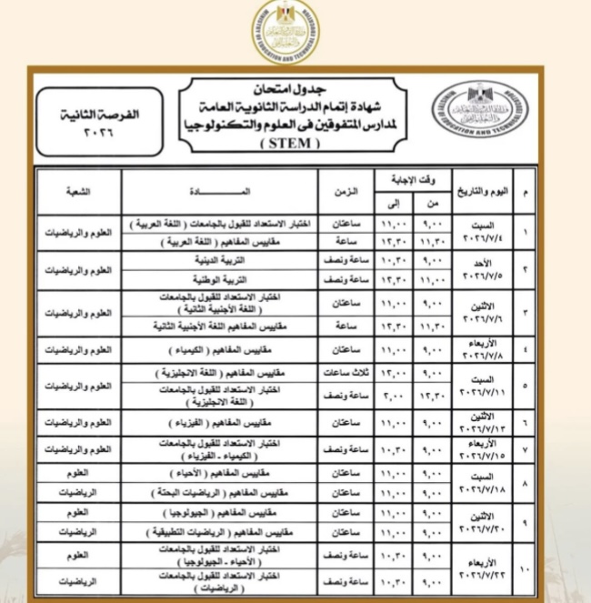 ويمكن للطلاب تحميل الجدول والاحتفاظ به على الهاتف أو الكمبيوتر، مما يساعدهم في متابعة مواعيد الامتحانات بدقة دون الحاجة للرجوع إلى مصادر غير موثوقة.