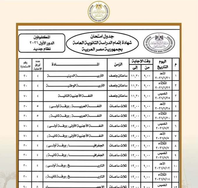 وفي النهاية يمثل جدول الثانوية العامة 2026 خريطة الطريق الأساسية لكل طالب، ومن خلاله يمكن تحقيق أفضل تنظيم ممكن للوصول إلى نتائج مميزة في هذه المرحلة الحاسمة.