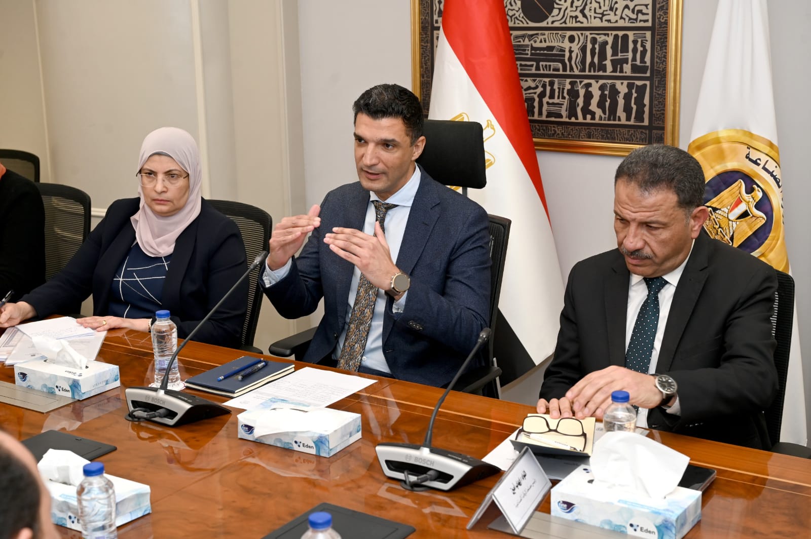 كما أشار إلى التعاون مع وزارة الصناعة في مبادرة القرى المنتجة من خلال دعمها بالمراكز التدريبية المتنقلة التابعة لوزارة العمل، لافتًا إلى أهمية تفعيل التعاون بين الوزارتين، خاصة في مجال التفتيش على العمل، مع الحرص في الوقت ذاته على تحقيق التوازن بين ضمان حقوق العمال وتوفير بيئة عمل لائقة تشجع الاستثمار وتدعم استقرار المنشآت الصناعية.