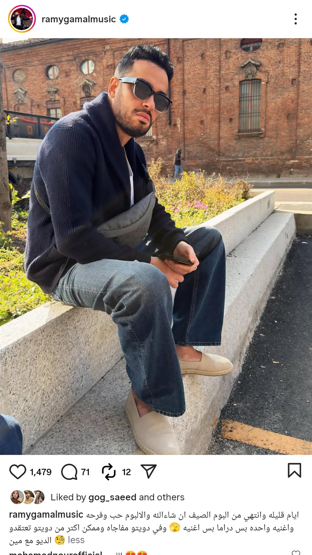 وكتب رامي جمال من خلال حسابه الرسمي عبر موقع تبادل الصور والفيديوهات القصيرة إنستجرام، قال: ايام قليله وانتهي من البوم الصيف ان شاء الله والالبوم حب وفرحه واغنيه واحده بس دراما بس اغنيه، وفي دويتو مفاجاه وممكن اكثر من دويتو تعتقدو الديو مع مين؟