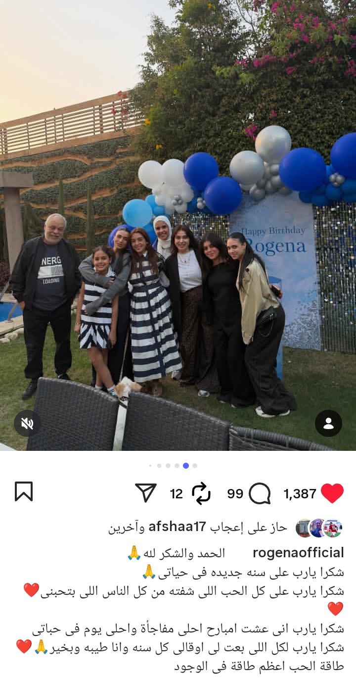 روجينا توثق احتفال عيد ميلادها مع أسرتها