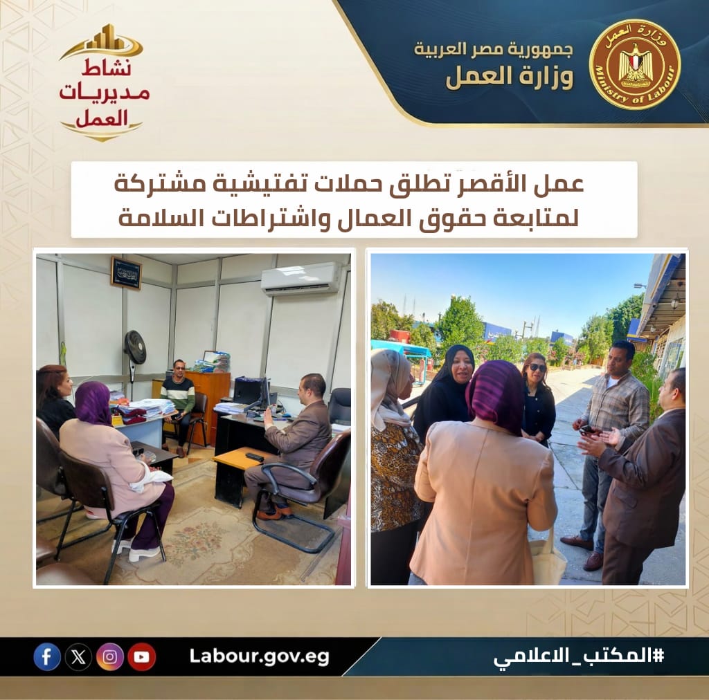 12. حملات تفتيشية مشتركة لمتابعة حقوق العمال والسلامة المهنية بالأقصر