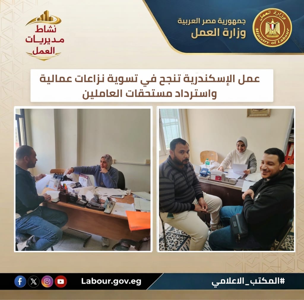 6. "عمل الإسكندرية" تنجح في استرداد مستحقات العاملين بشركتين كبريين