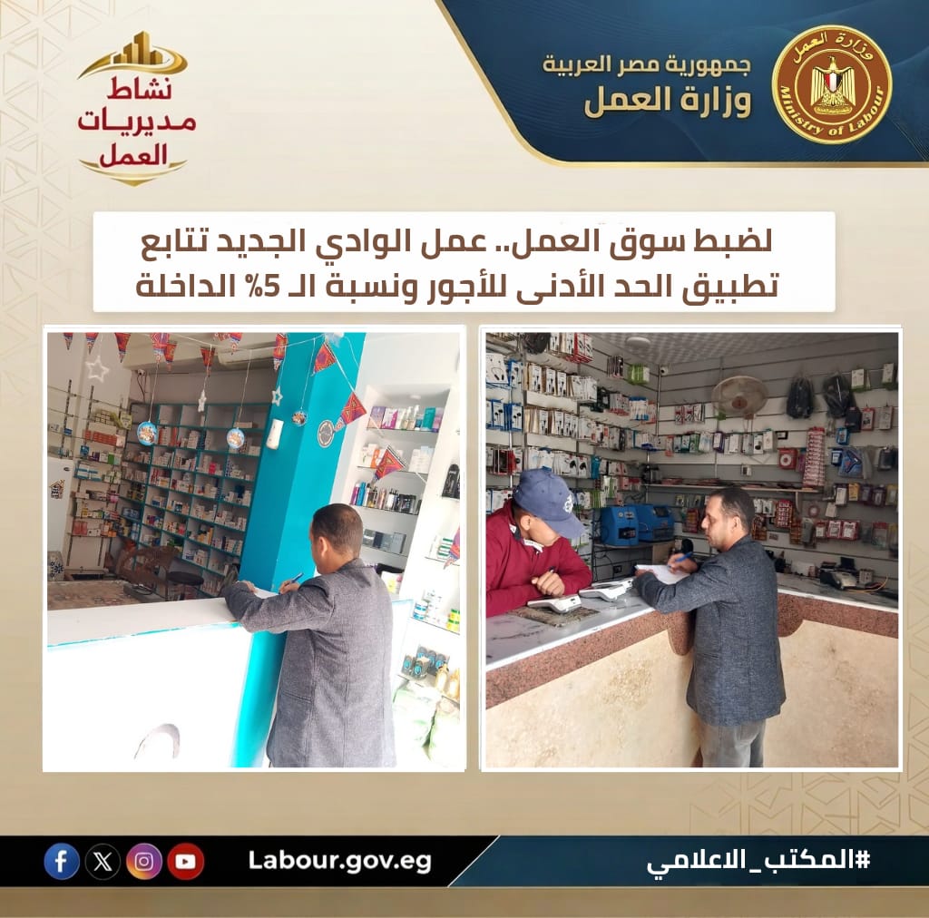5. حملة تفتيشية لمتابعة الأجور ونسبة الـ 5% بمركز الداخلة بالوادي الجديد