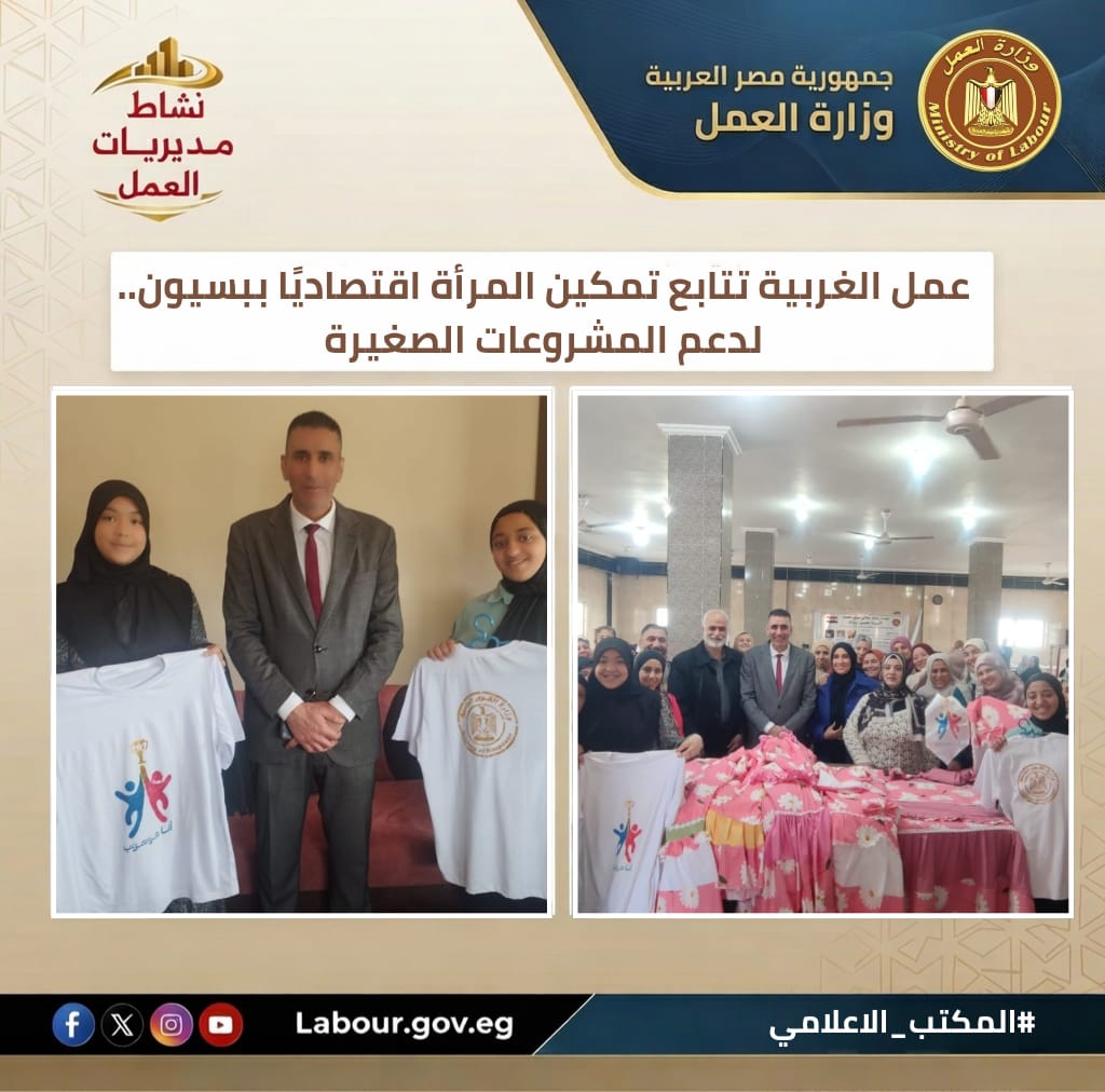 تنفيذًا لتوجيهات وزير العمل حسن رداد، تفقد المهندس نهاد عبد المعطي، وكيل وزارة العمل بالغربية، مشروع "تمكين المرأة اقتصادياً" بمركز بسيون. وشملت المتابعة التنسيق مع الجمعية الشرعية لتوفير مستلزمات بدء المشروعات الخاصة للمتدربات فور انتهاء التدريب لضمان استقلالهن الاقتصادي.