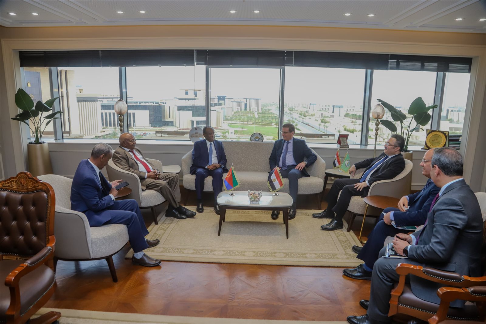 وزير الزراعة يبحث تعزيز التعاون المشترك مع المستشار الاقتصادي للرئيس الإريتري ووزير التجارة