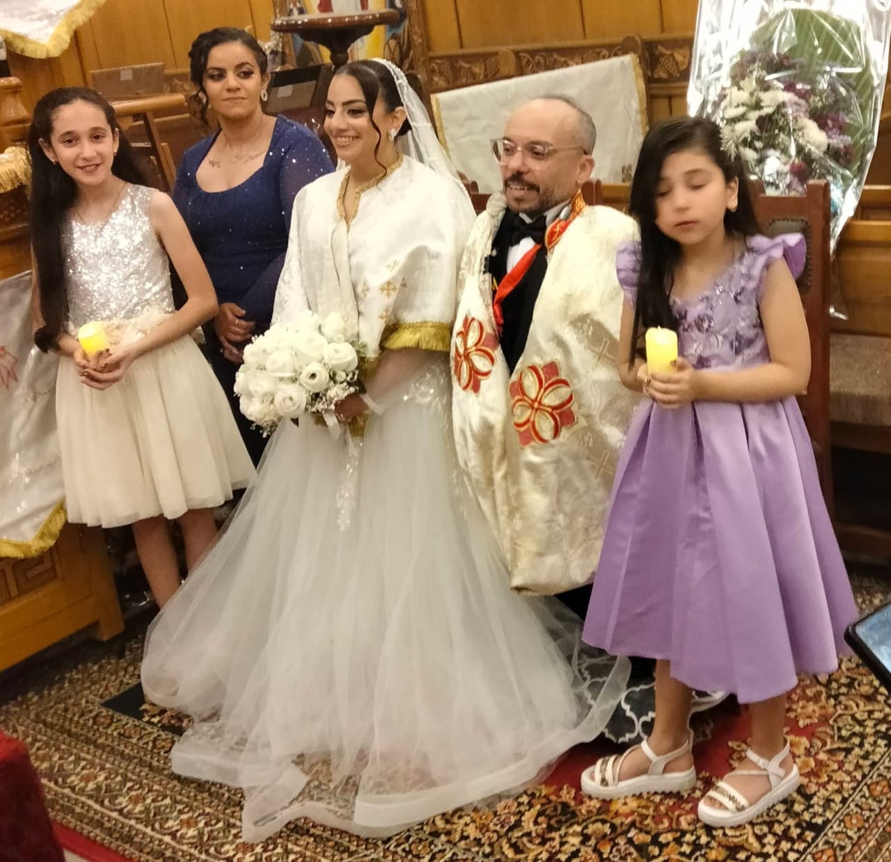 وأُقيمت مراسم الزواج وفق الطقوس الدينية الكنسية بحضور كهنة وأساقفة كنيسة بنها، حيث التزم العروسان بإتمام الإجراءات الدينية وسط أجواء هادئة، دون حضور فني أو مشاركة من أصدقاء الفنان من الوسط الفني، في اختيار يعكس رغبة الطرفين في الاحتفال بعيدًا عن الأضواء والاكتفاء بالطابع العائلي البسيط في مسقط رأس العريس.