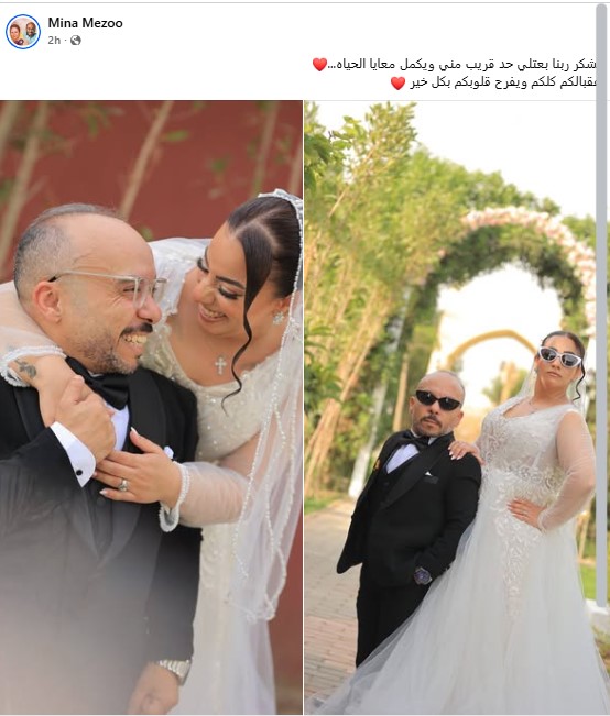 حرص الفنان مينا أبو الدهب على توجيه رسالة رومانسية لزوجته، وذلك بعد الاحتفال بزفافهما وسط أجواء عائلية دافئة، بحضور الأهل والأصدقاء.