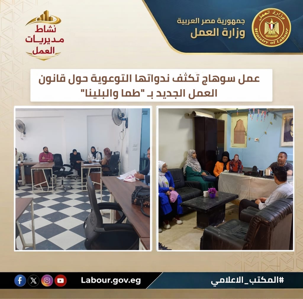 14. ندوات توعوية حول قانون العمل الجديد بالمنشآت الاقتصادية بسوهاج