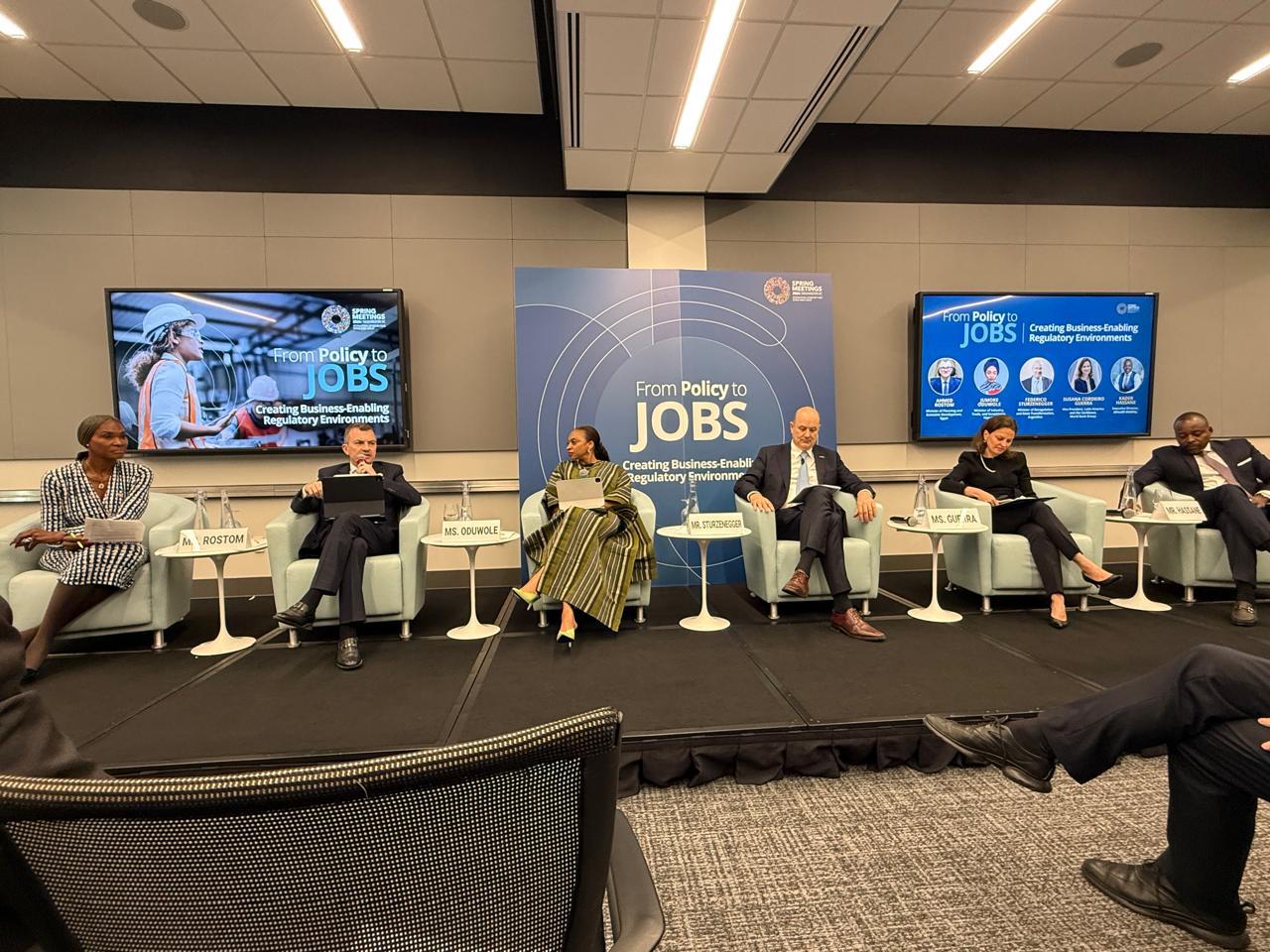 وشهدت الجلسة حضور نخبة من صناع السياسات، وقادة القطاع العام، ورواد الأعمال، بمشاركة السيد/ باسكال دونوهو، المدير المنتدب للعمليات بمجموعة البنك الدولي، السيد/ جوموكي أودوولي، وزيرة الصناعة والتجارة والاستثمار بنيجيريا؛ والسيد/ فيديريكو ستورزينجر، وزير التحول الرقمي بالأرجنتين؛ والسيدة/ سوزانا كورديرو غيرا، نائبة رئيس مجموعة البنك الدولي لأمريكا اللاتينية ومنطقة الكاريبي؛ والسيد/ قادر حسان، المدير التنفيذي لمنصة موبيليتي التابعة لمؤسسة Africa50.