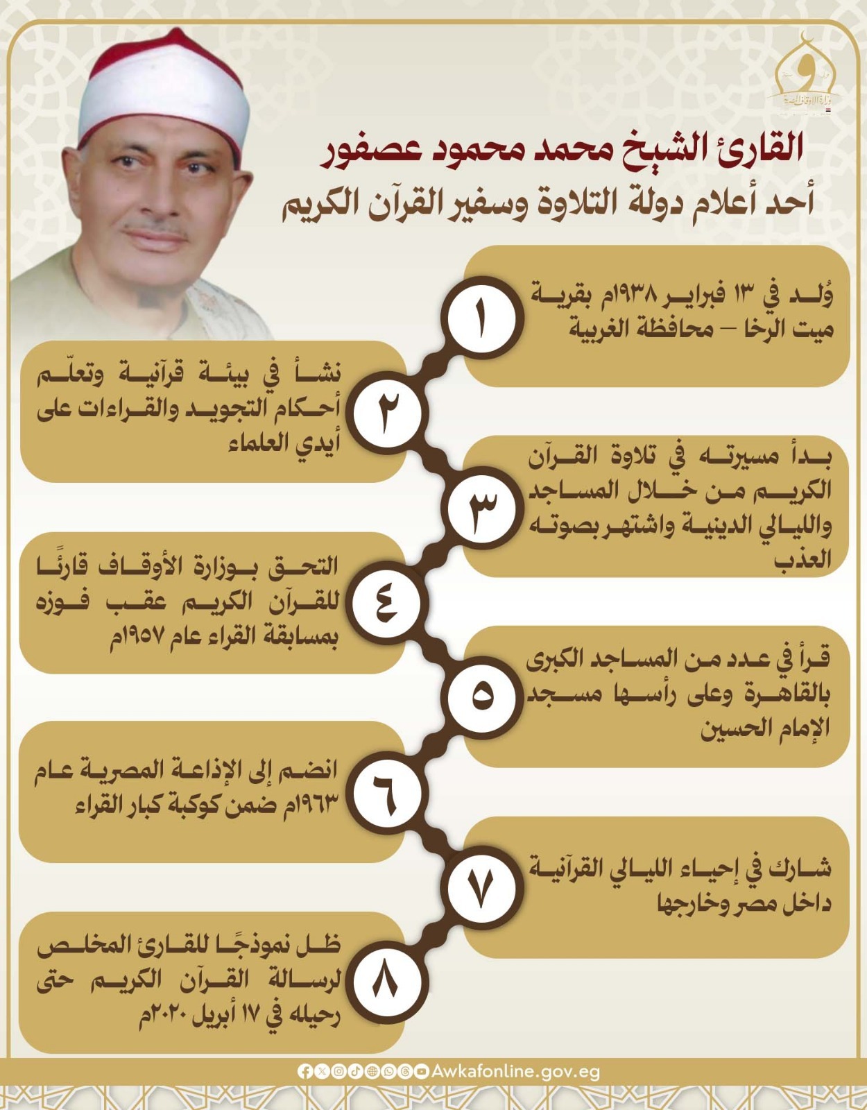 أحد أعلام دولة التلاوة في مصر.. «الأوقاف» تُحيي ذكرى رحيل القارئ الشيخ محمد محمود عصفور