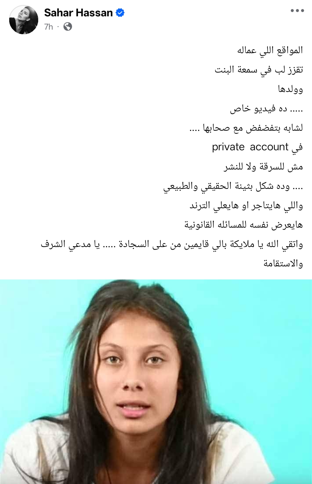 أضافت: وده شكل بثينة الحقيقي والطبيعي، واللي ها يتاجر او ها يعلي الترند، ها يعرض نفسه للمسائله القانونية.