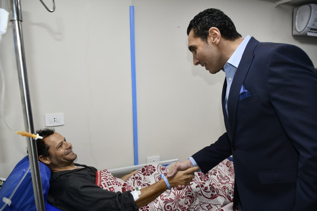 وزير الشباب والرياضة يطمئن على صحة عامل بنادي النادي شيراتون بعد تعرضه لإصابة