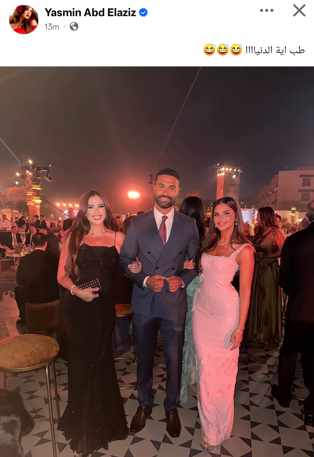 ونشرت ياسمين عبد العزيز الصورة من خلال حسابها الرسمي عبر موقع التواصل الاجتماعي فيسبوك، وقالت: طب إيه الدنيا.