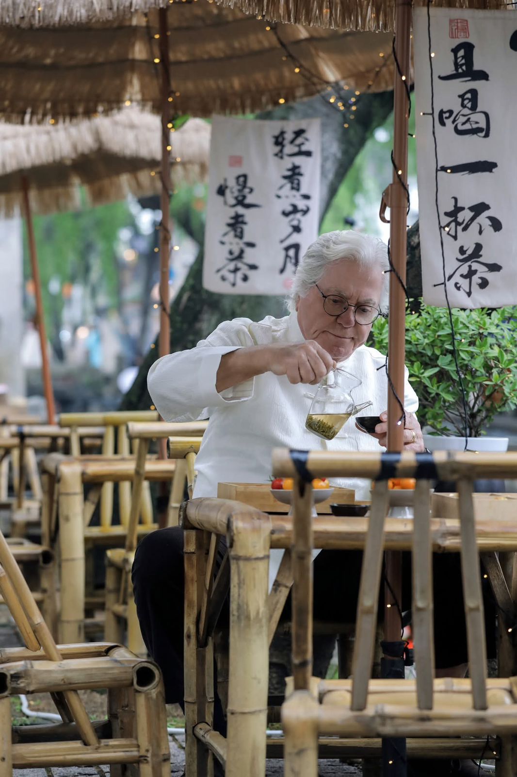 من جانبه، أوضح حسين فهمي أنه يجسد خلال الفيلم شخصية رجل مسن كثير الترحال، عانى من قسوة الحياة، لكنه يحتفظ بالحكمة والكرامة، مشيرًا إلى أن هذا العمل يمثل خطوة مهمة بالنسبة له، خاصة في ظل اهتمامه بتقريب الثقافات بين الشعوب، خصوصًا تلك التي تنتمي إلى حضارات عريقة مثل مصر والصين.